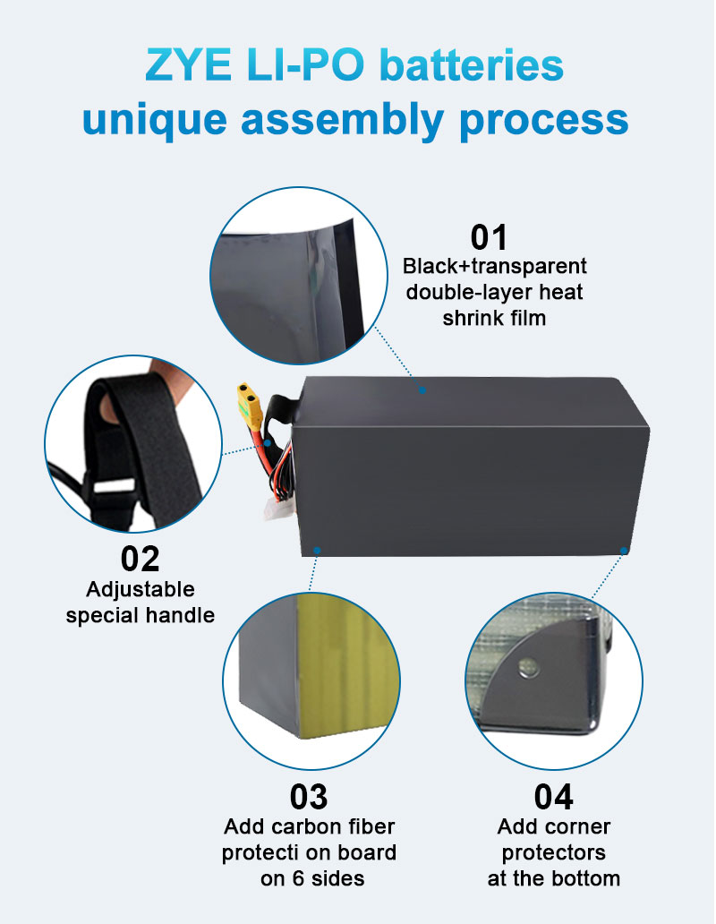 ကျွန်တော်တို့ရဲ့22000mAh 12s Lipo ဘက်ထရီစွမ်းဆောင်ရည်မြင့်မားသောအက်ပ်လီကေးရှင်းများ၏လိုအပ်ချက်များကိုဖြည့်ဆည်းရန်အင်္ဂါရပ်များနှင့်အတူထုပ်ပိုးထားသည်။