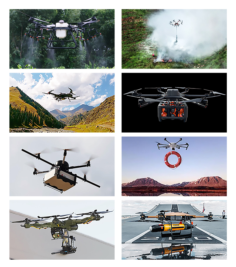 စီးပွားဖြစ် UAV များအတွက်၊ မြေပုံဆွဲခြင်း၊ စစ်ဆေးခြင်း၊ ပို့ဆောင်ခြင်း၊ လုံခြုံရေးနှင့် စိုက်ပျိုးရေးအတွက် စံပြသတ်မှတ်ထားသော ဘက်ထရီသည် ကွဲပြားသည်။