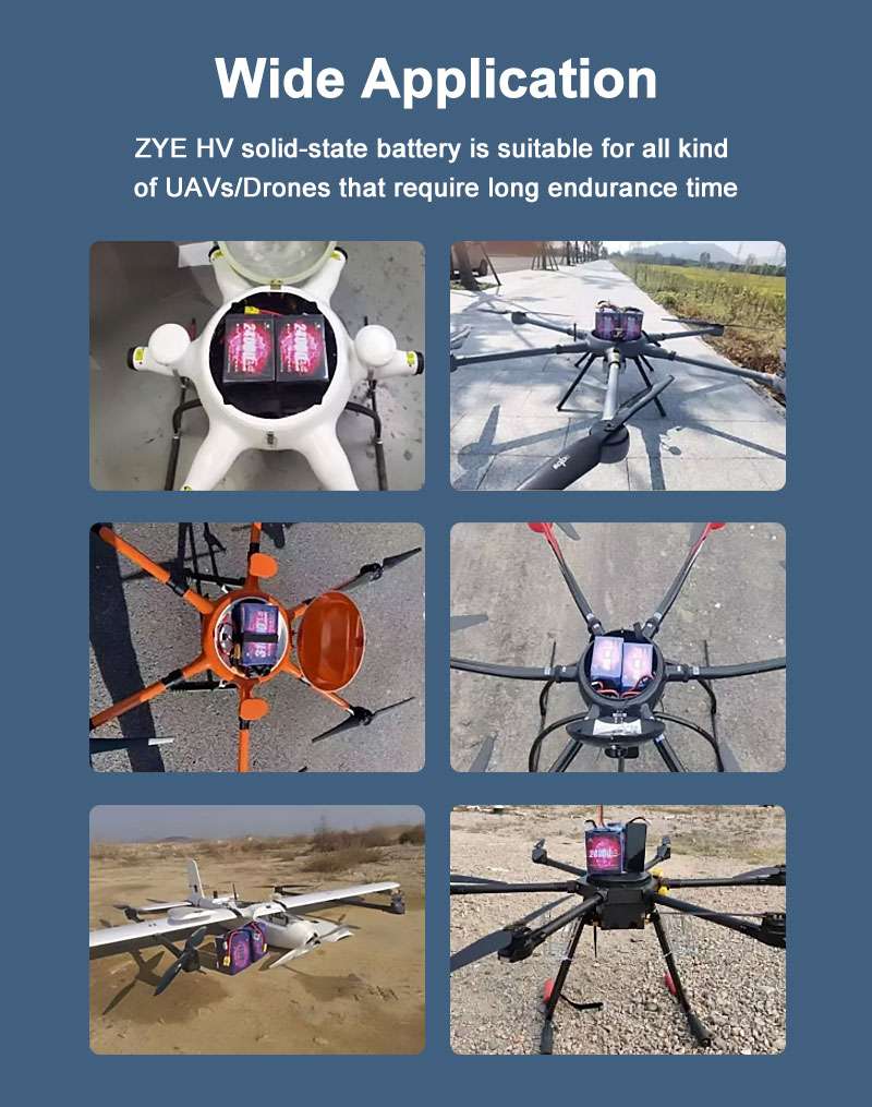 Fourth: Safety Features. The whole point of a solid state UAV battery is safety—no flammable liquid electrolyte like lipo batteries. But not all solid state batteries are equal. Look for built-in protection against overcharging, over-discharging, short circuits, and overheating. These features prevent battery damage and keep your drone (and you) safe. At ZYEBATTERY, every solid state UAV battery has a custom BMS (Battery Management System) that handles all these safety checks, so you can fly with peace of mind.